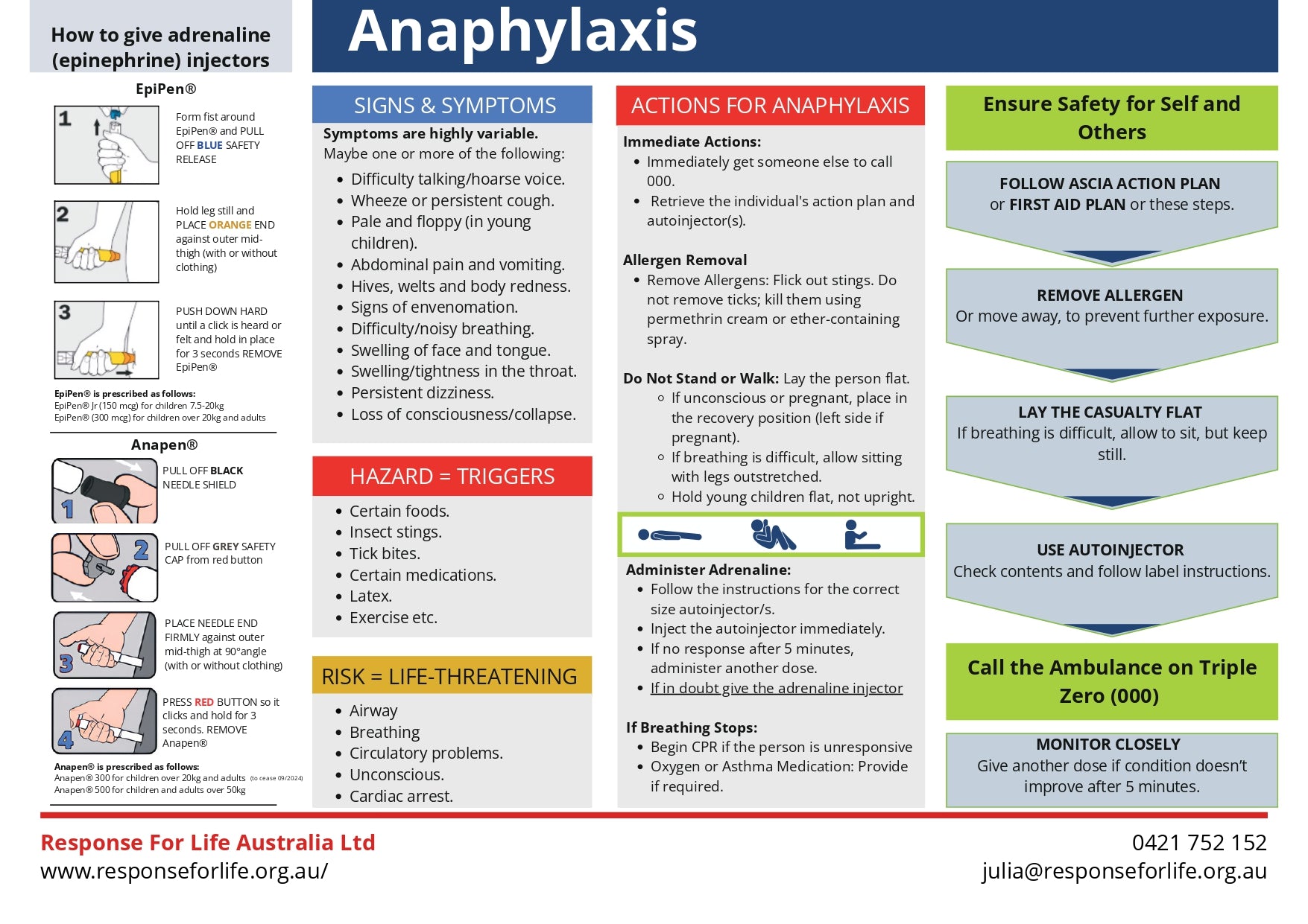 Free First Aid Chart | A quick-reference chart for anaphylaxis response, including EpiPen and Anapen use.