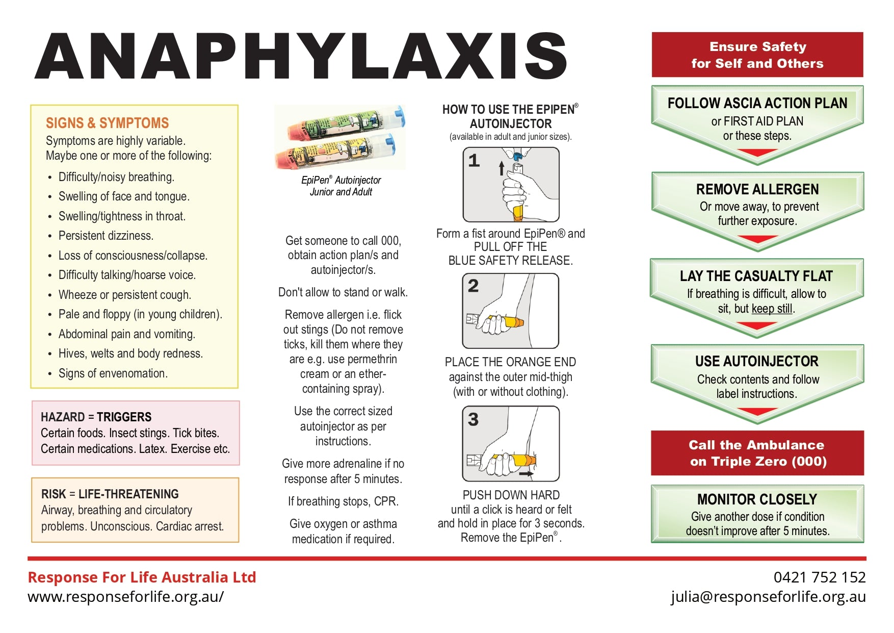 Free First Aid Chart | A simple visual guide to help respond to anaphylaxis.