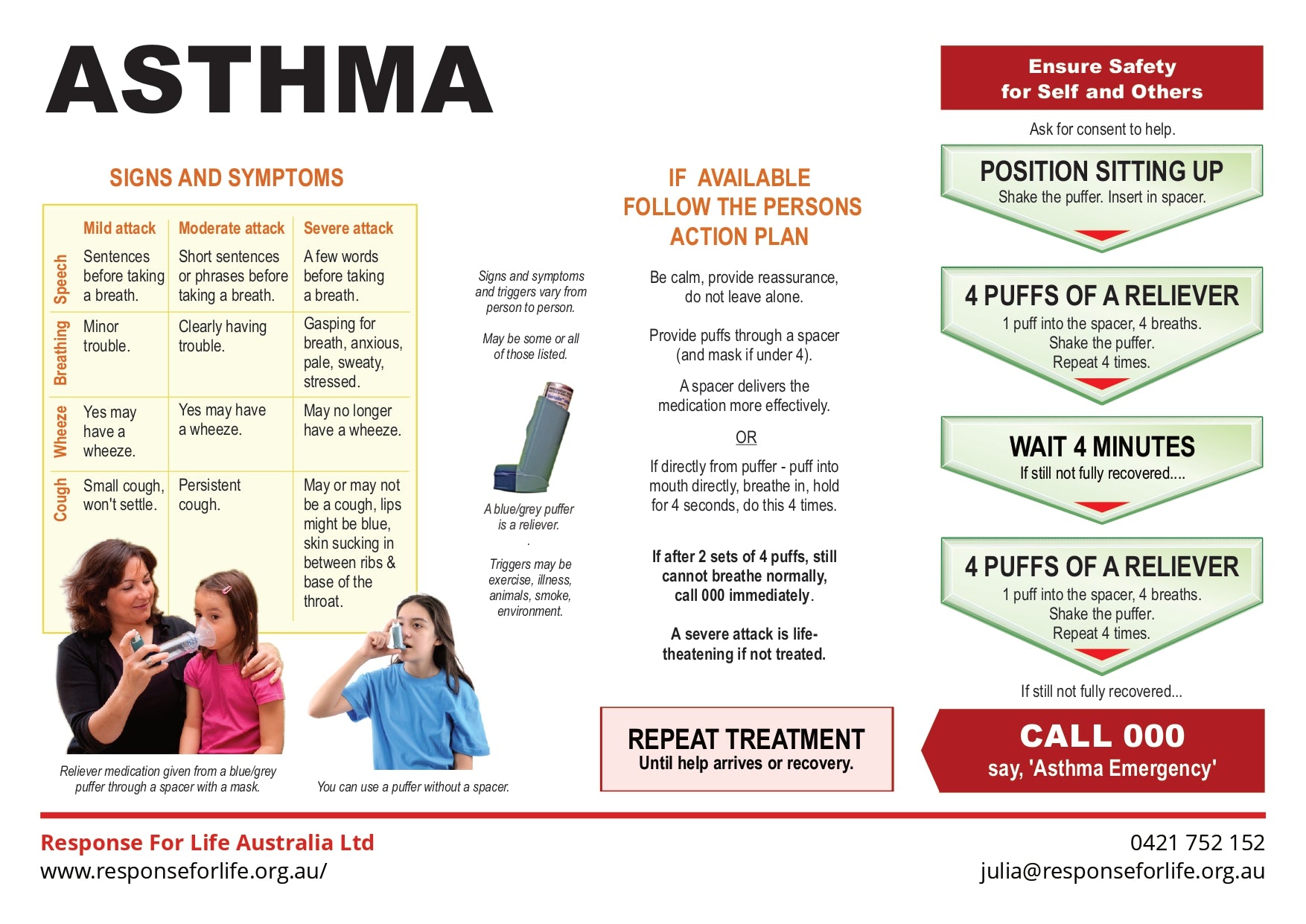 Free First Aid Chart | A practical chart to help respond confidently to asthma symptoms and attacks.