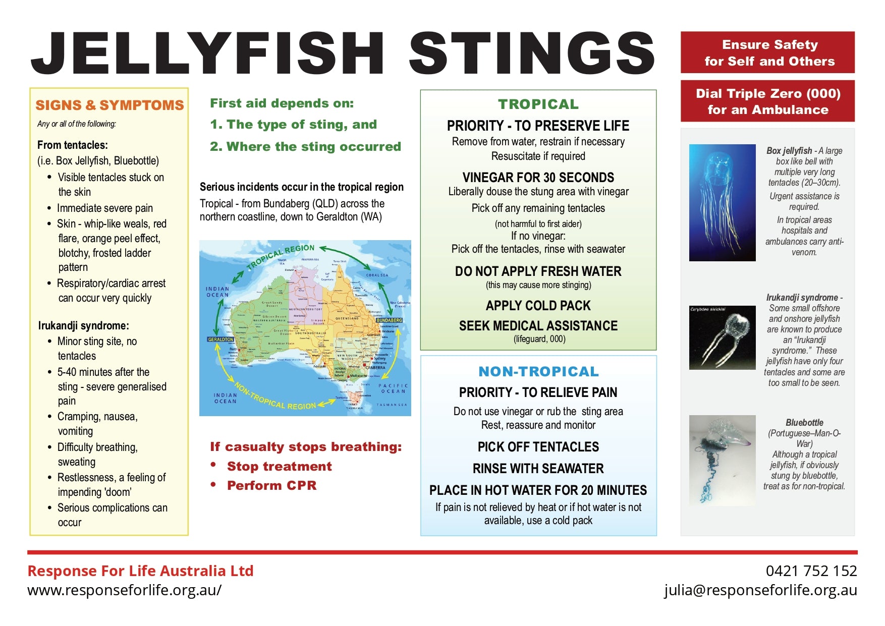 Free First Aid Chart | Recognise the signs and symptoms of jellyfish stings and respond appropriately depending on the situation.