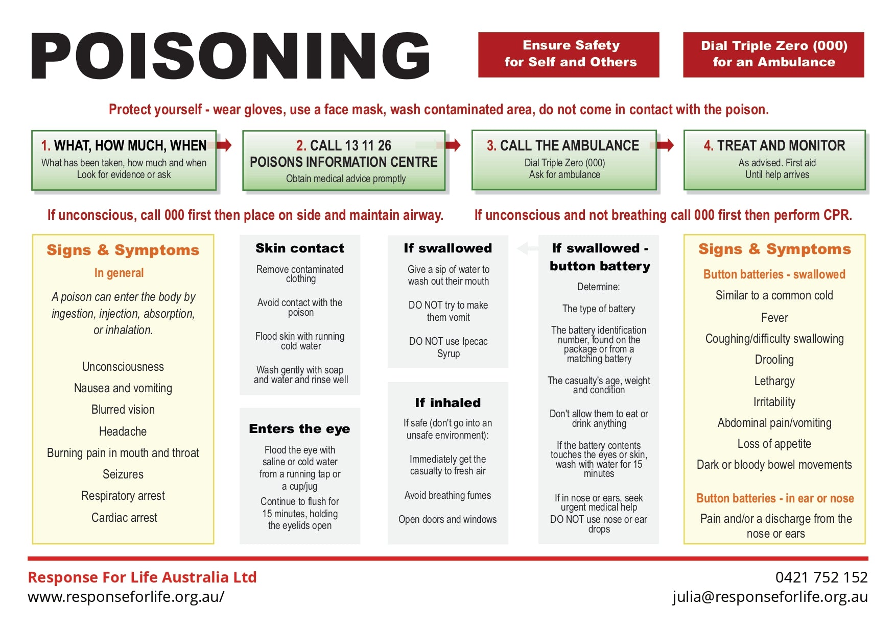 Free First Aid Chart | A step-by-step guide to recognising poisoning symptoms and responding to skin, eye, inhalation, or swallowed exposures.