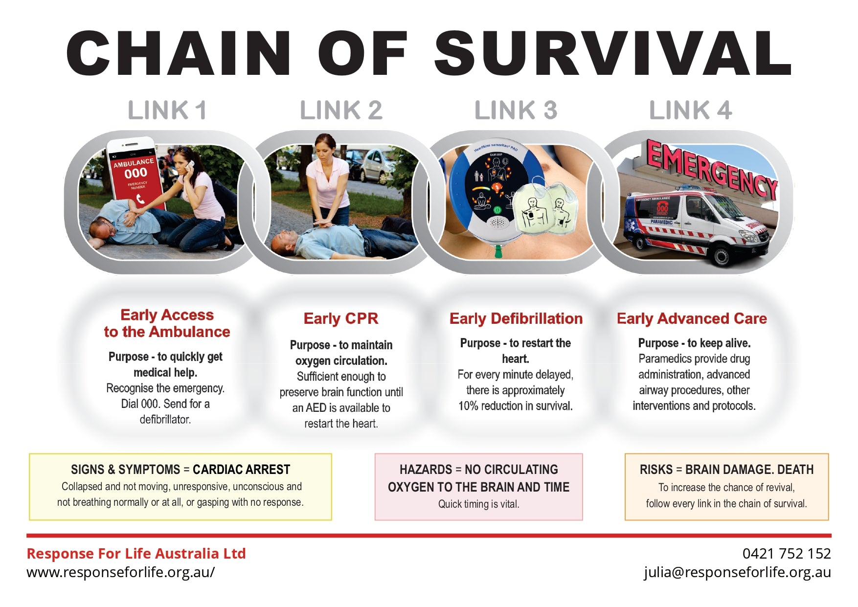 Free First Aid Chart | Learn the steps of the Chain of Survival and how each action can save a life in a cardiac emergency.