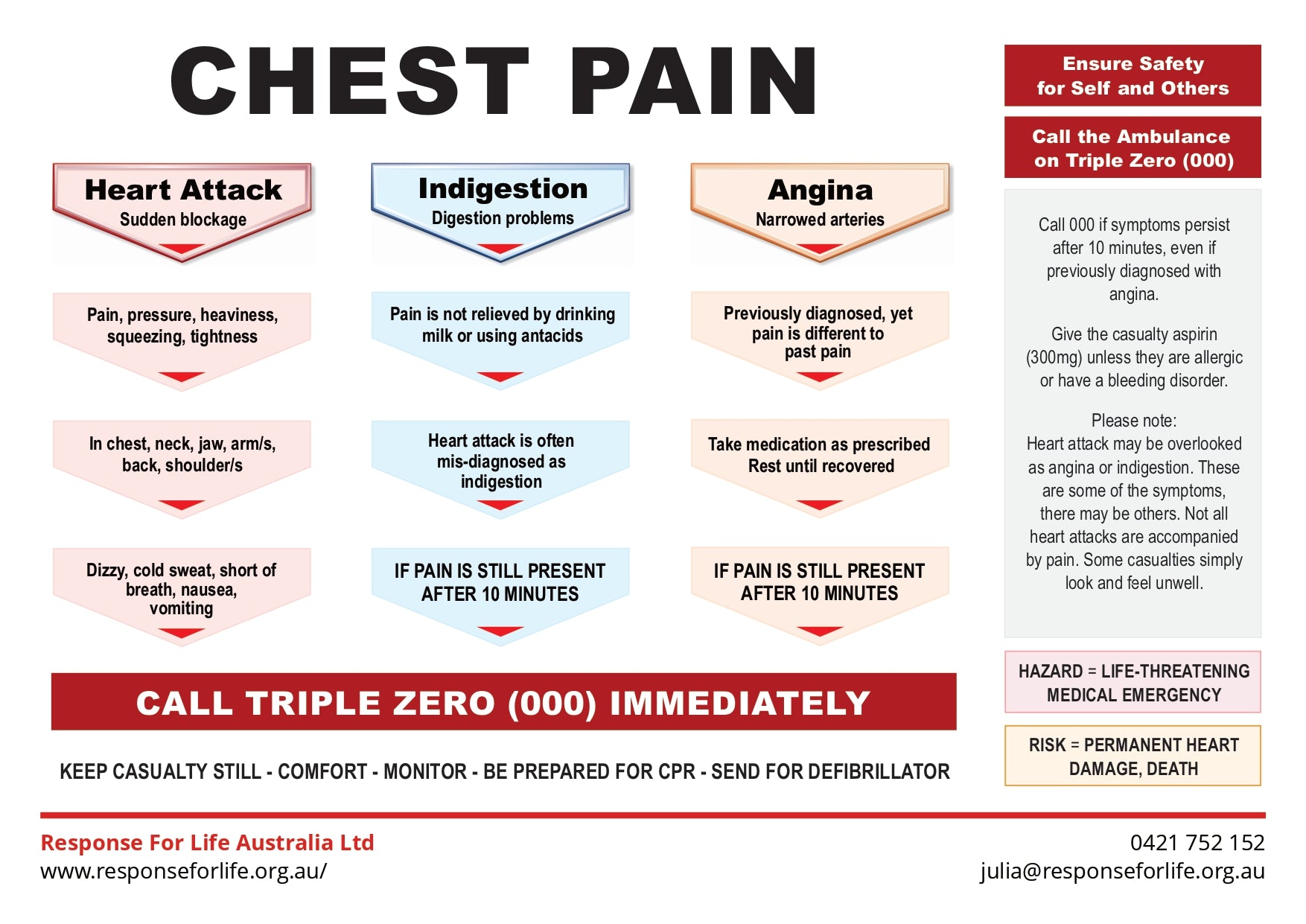 Free First Aid Chart | Learn to identify different kinds of chest pain and respond quickly.