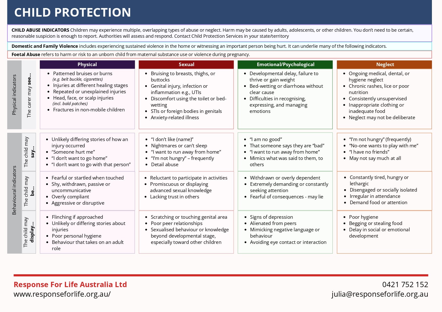 Free First Aid Chart | A guide on recognising indicators that may raise child protection concerns.