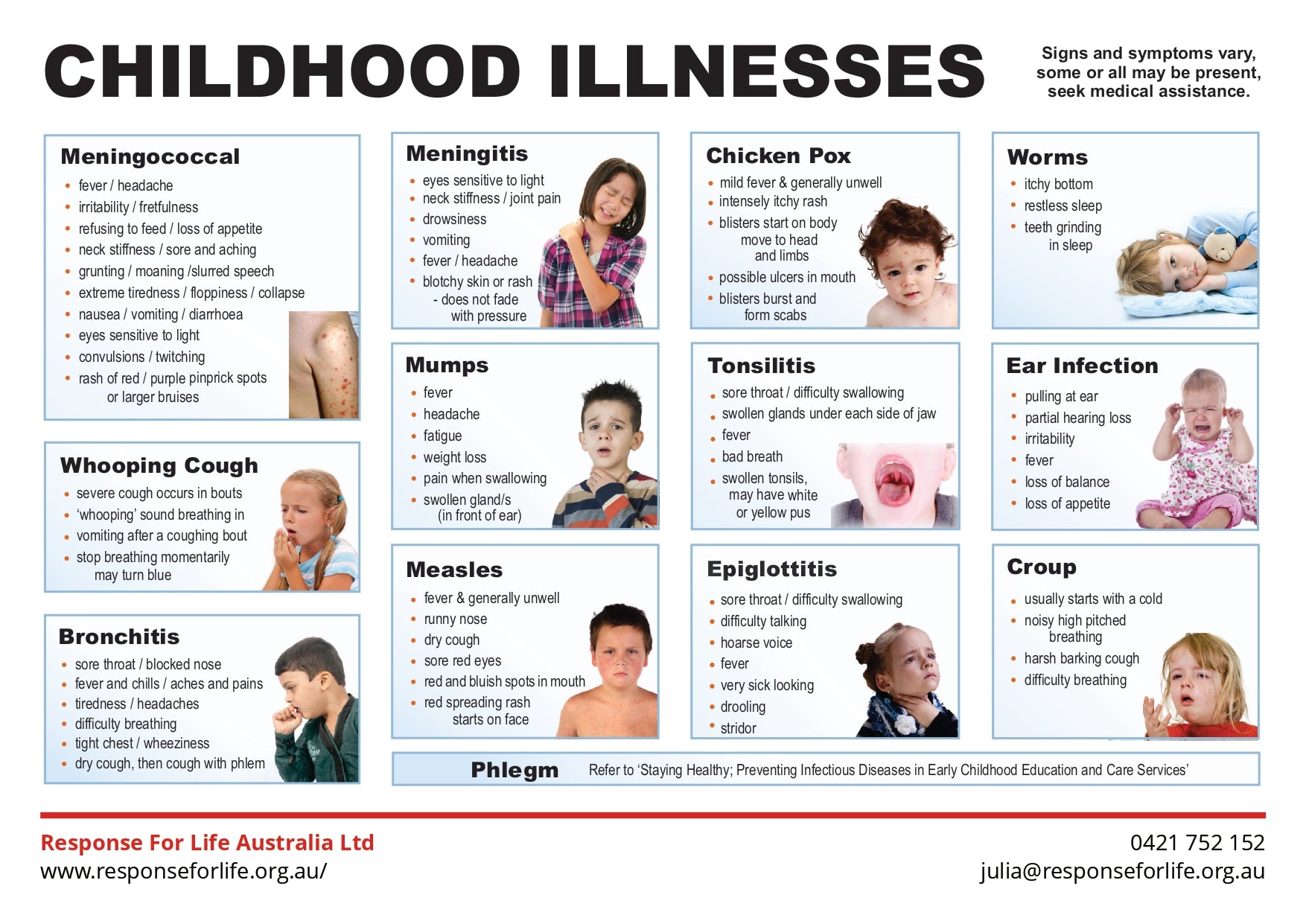Free First Aid Chart | Quick reference on identifying common childhood illnesses.