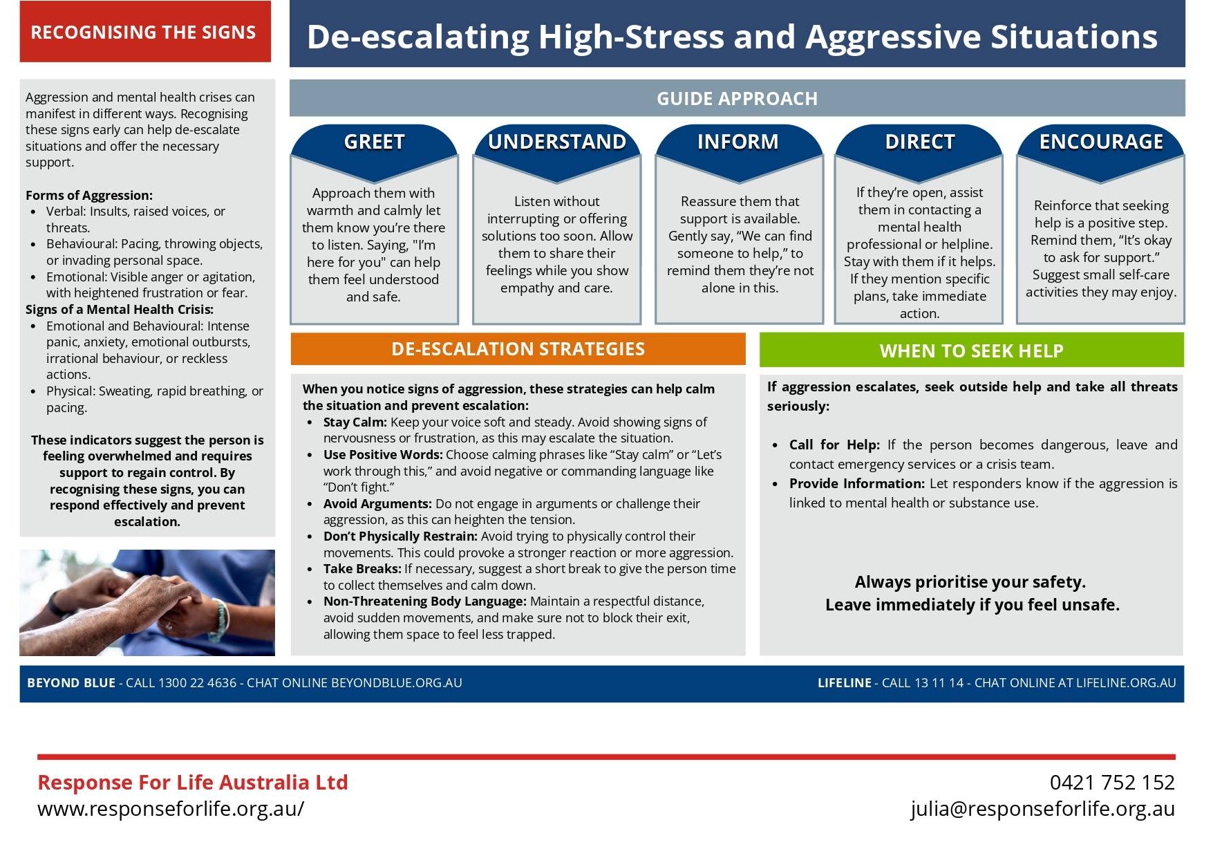 Free First Aid Chart | A supportive guide to identifying signs of aggression and responding appropriately.