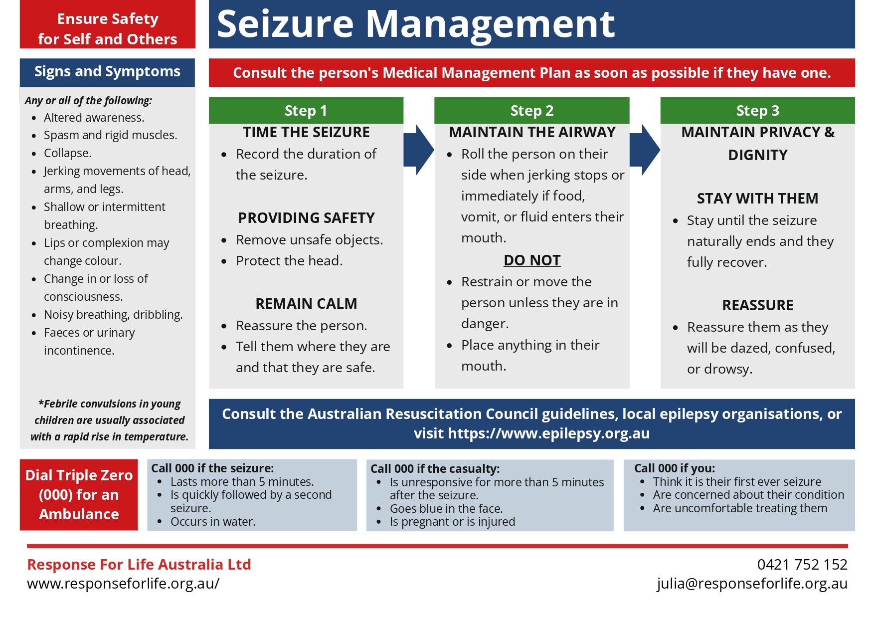 Free First Aid Chart | Understand seizure warning signs, safe first aid response, and when emergency help is needed.