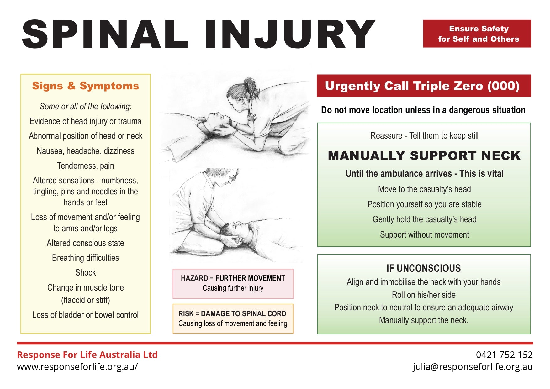 Free First Aid Chart | Identify potential spinal injuries and know how to respond safely until help arrives.