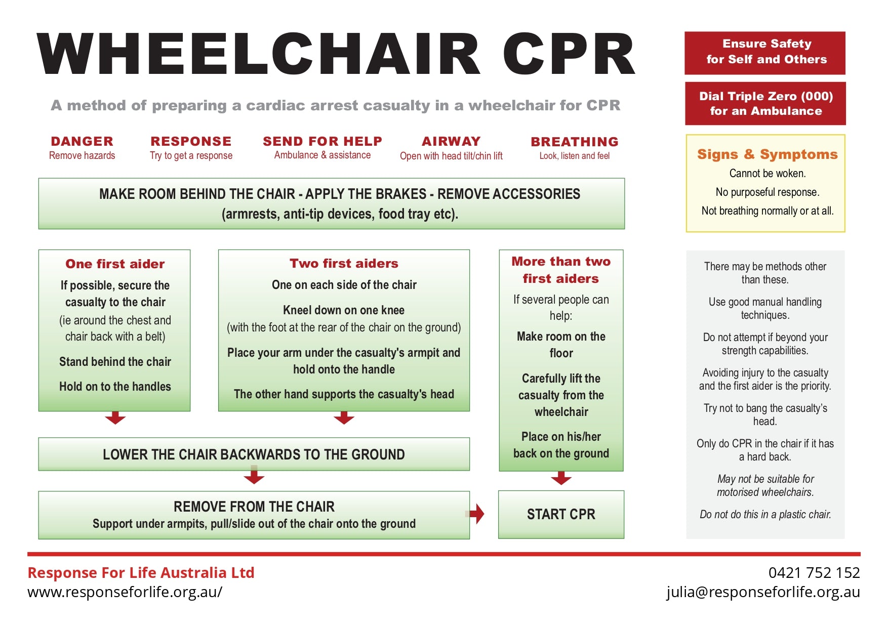 Free First Aid Chart | A method of preparing a cardiac arrest casualty in a wheelchair for CPR.